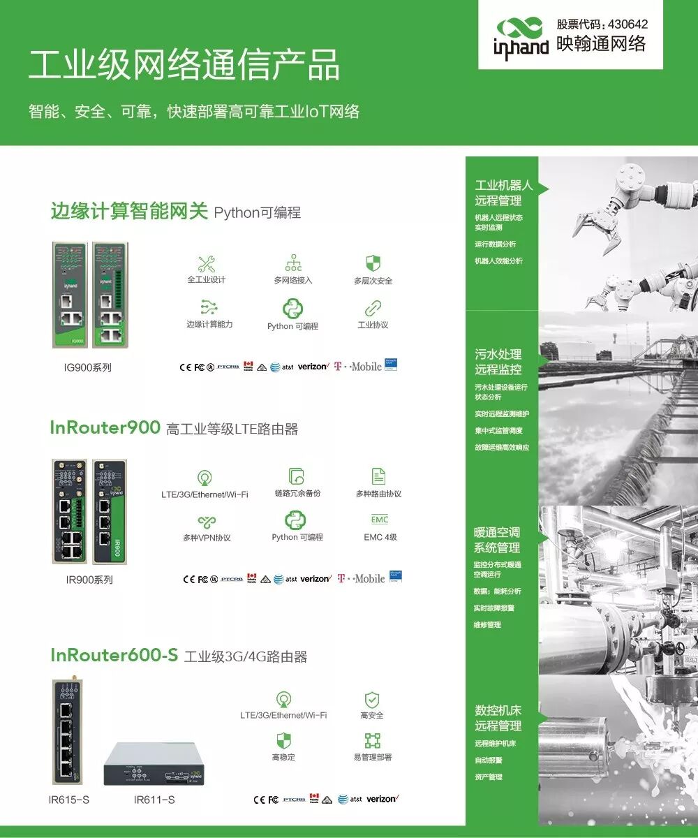 北京映翰通网络技术股份有限公司是物联网(IoT)技术公司,成立于2001年,工业级联网通信产品&物联网整体方案提供商,产品及技术处于行业领先水平!